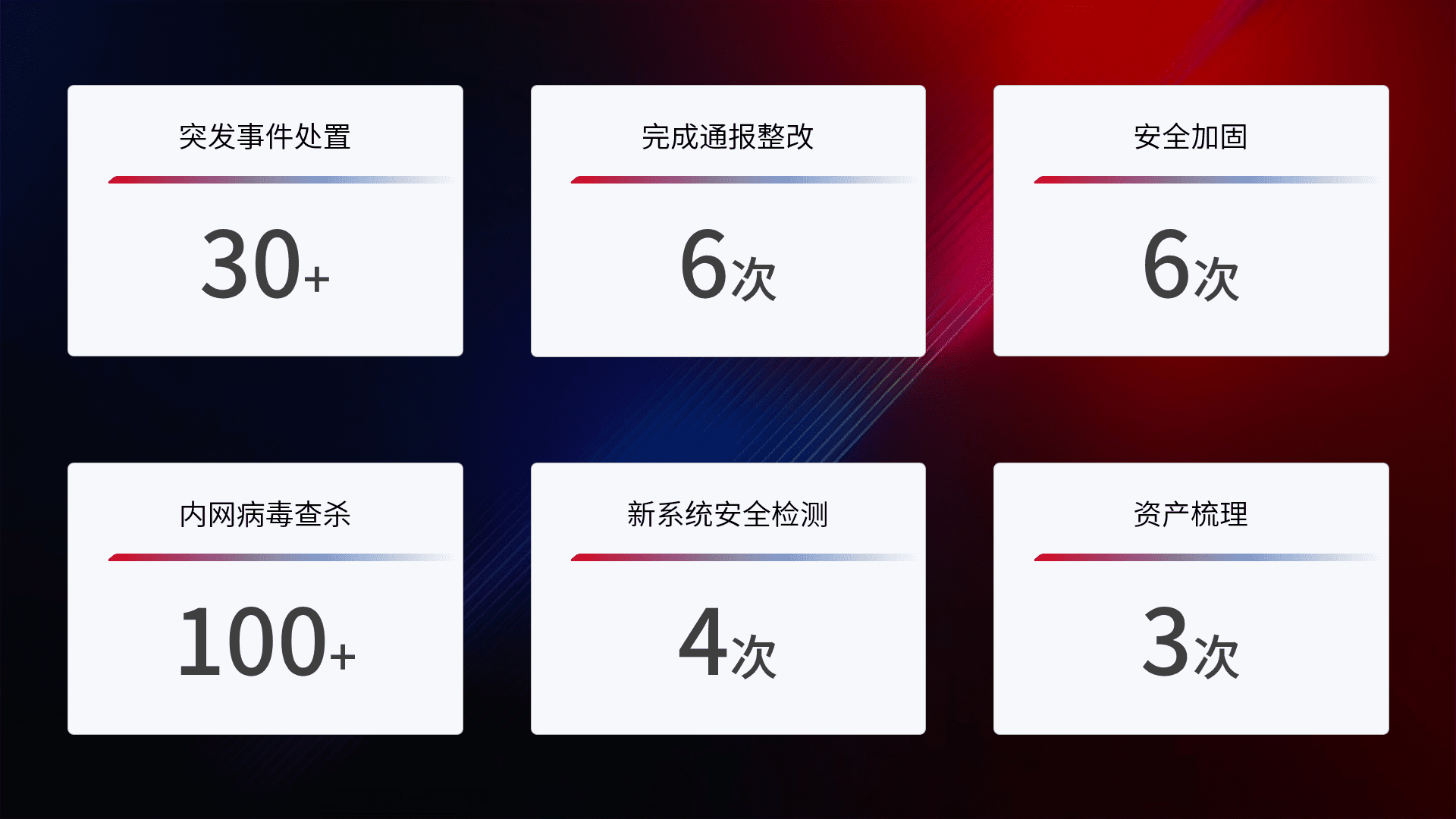 网络安全加固与风险管理:通过技术加固手段,,,如加强区域隔离,,,缩减攻击内网横向移动的范围;优化现有网络安全管理制度,,,,降低网络威胁暴露面,,,,减少被黑客攻击的可能性。。